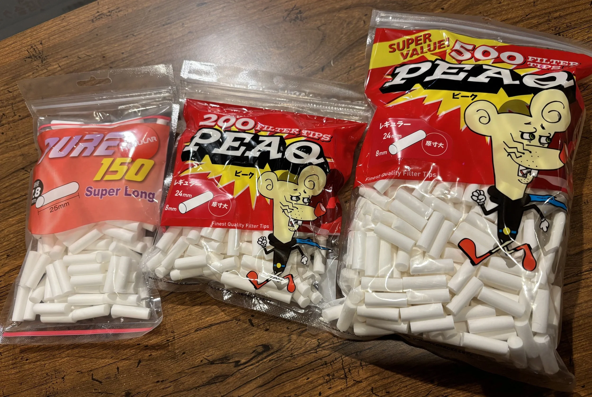 レギュラーロングフィルター登場! 11月18日 著者 店長 杉本 お問い合わせが多かったレギュラープレーンロングフィルターが入荷。ピュア 長さ25㍉ 150個 ¥440ピーク 長さ24㍉ 200個 ¥380 お徳用 500個 ¥770是非お試しください。 店長 杉本